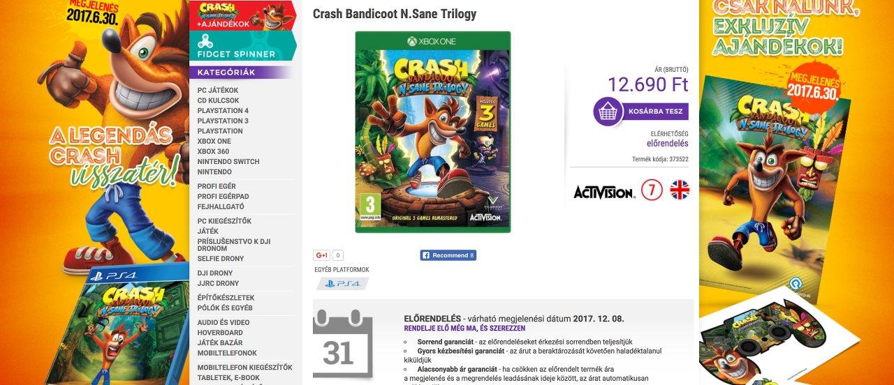 خانه » بازی Crash Bandicoot N Sane Trilogy طبق اطلاعات فروشگاه مجارستانی برای Xbox One عرضه میشود