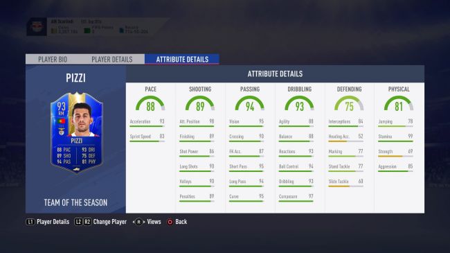 Pizzi – پست هافبک راست – باشگاه بنفیکا پرتغال – Overall 93