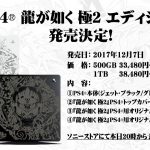 سازندگان ژاپنی همچنین باهمکاری کمپانی سونی، دو ویرایش ویژه از کنسول PS4 را با تِم بازی Yakuza Kiwami 2 تدارک دیدهاند که در دو رنگ Jet Black (سیاه) و Glacier White (سفید) همراه با حافظه داخلی ۵۰۰ گیگابایت بطور انحصاری در کشور ژاپن، عرضه میشود.