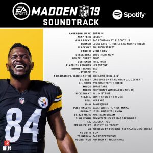 EA Sports به تازگی لیست کاملی از موسیقیهای موجود در بازی Madden NFL 19 را منتشر کرد. در این لیست اهنگ های خوبی از خوانندگان معروف به چشم میخورد. در این بازی تِرک هایی از Post Malone, Migos, Pusha T و Cardi B موجود است و شما میتوانید از اهنگهای این خوانندگان لذت ببرید.