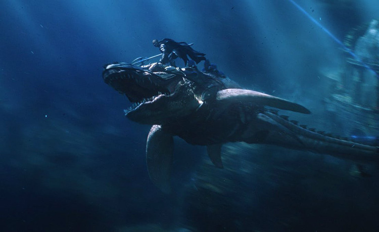 اکثر ارتشیان Orm در آتلانتیس، بر کوسههای سفید بزرگ سوارند و در کنار آنها، جنگجویان Nereus اژدهایان دریایی را در اختیار دارند. همانطور که در تصویر مشاهده میکنید، Vulko بعنوان یک مقام عالی رتبه نیروهای آتلانتیس، یک کوسه چکشی عظیم الجثه زره پوش را میراند. در تصویر دوم منتشر شده توسط وان، Orm را سوار بر یک tylosaur مشاهده میکنیم که این موجود در واقع یک گونه تخیلی بین کوسه و کروکودیل است.