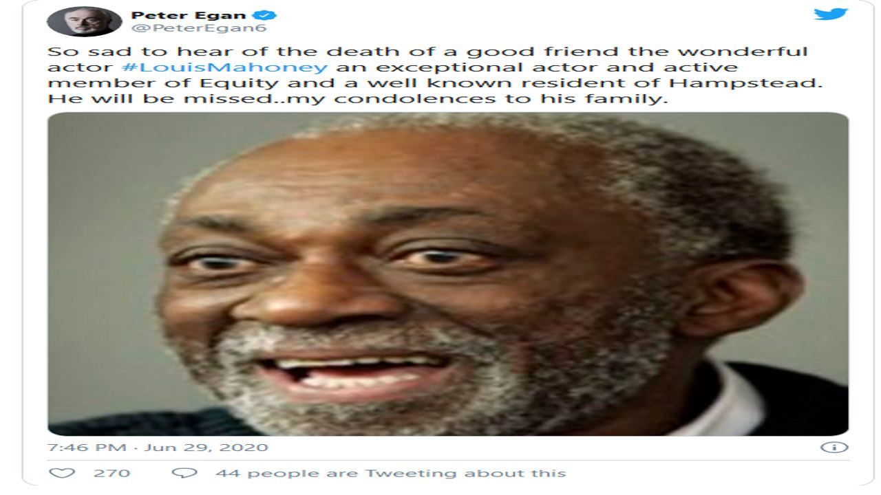لویی ماهونی (Louis Mahoney) که در آثاری همچون دکتر هو (Doctor Who)، Cry Freedom و Holby City ایفای نقش کرده بود، در سن 81 سالگی درگذشت. ماهونی همچنین یکی از افرادی بودکه از ایام دور کمپینهای زیادی را با محوریت ضد-نژادپرستی راهاندازی و رهبری کرد. وی همچنین با حضور پررنگ خود در کمپانی تئاتر Royal Shakespeare Company، یکی از اولین افراد سیاهپوستی بود که موفق به حضور در این کمپانی شد. مدیر برنامههای این بازیگر محبوب در اعلام خبر درگذشت وی با تاسف تمام بیان کردند: