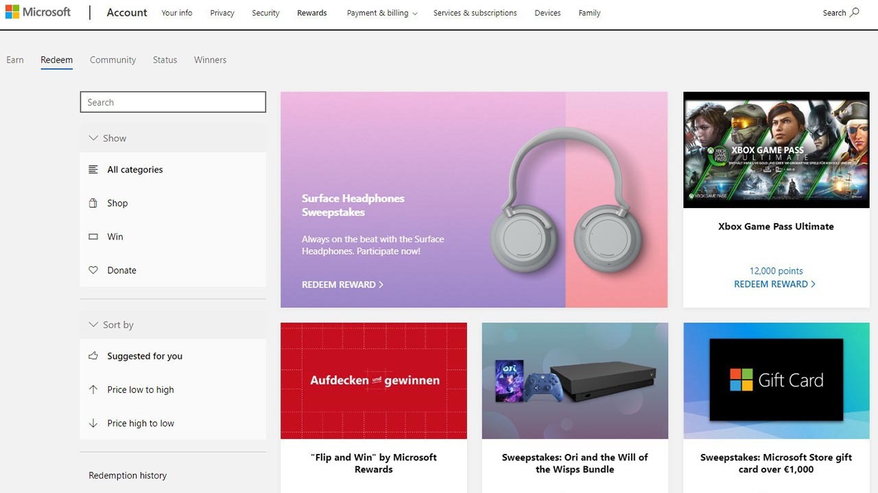آسانترین راه برای استفاده (Redeem) از امتیازات شما این است که در وب سایت مایکروسافت در این بخش بروید و با همان حساب کاربری که در ایکس باکس و ویندوز 10 خود استفاده میکنید وارد سیستم شوید. شما علاوهبر انجام کوئستهای Game Pass، با استفاده از Bing، پرکردن نظرسنجی در وب سایت مایکروسافت و خیلی کارهای دیگر هم میتوانید امتیاز بخش جوایز مایکروسافت را بهدست آورید.